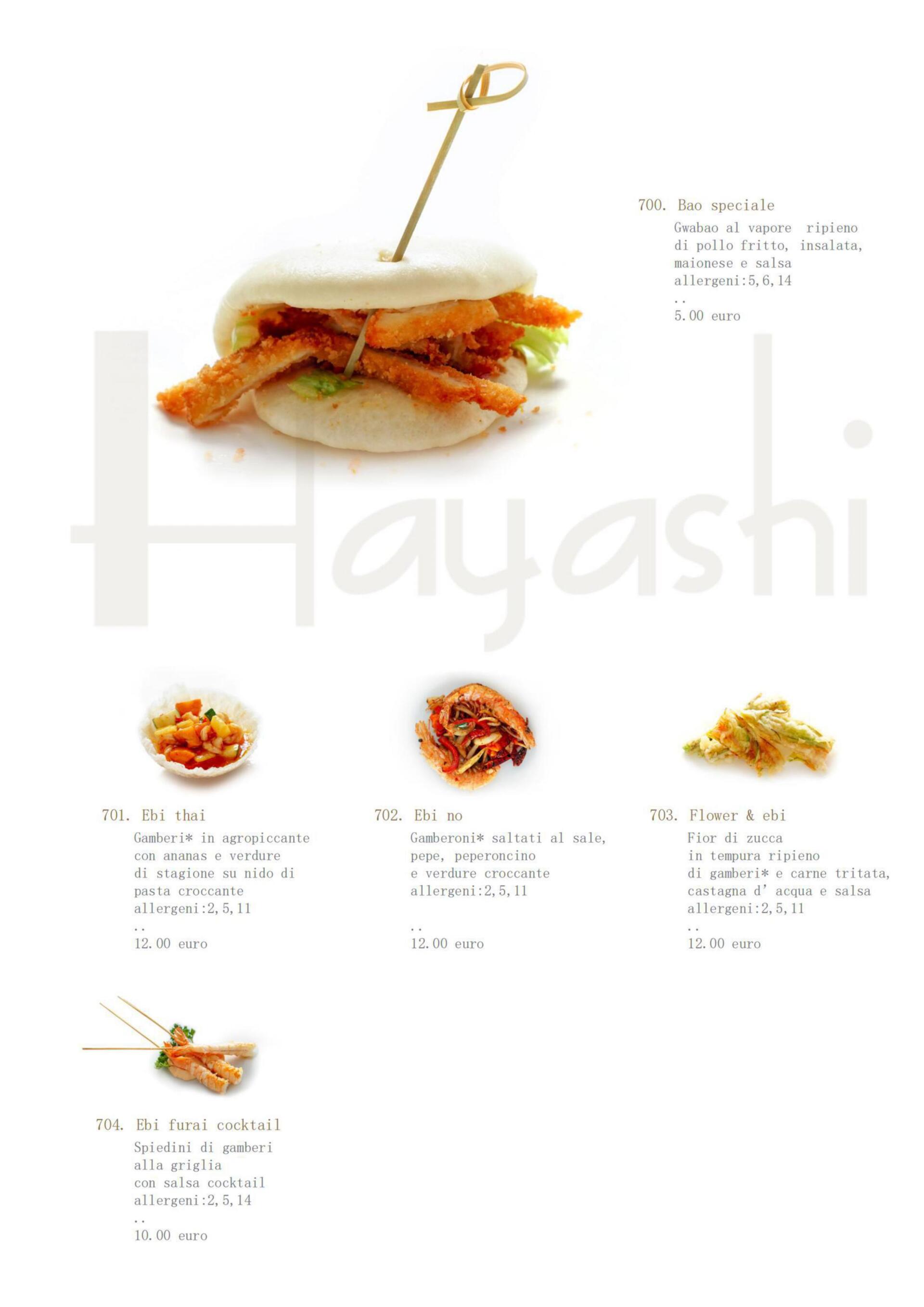 Il Ristorante Hayashi propone una cucina cinese e orientale, con specialità cinesi e fusion che interpretano in modo tradizionale, ma creativo, la classica cucina asiatica.