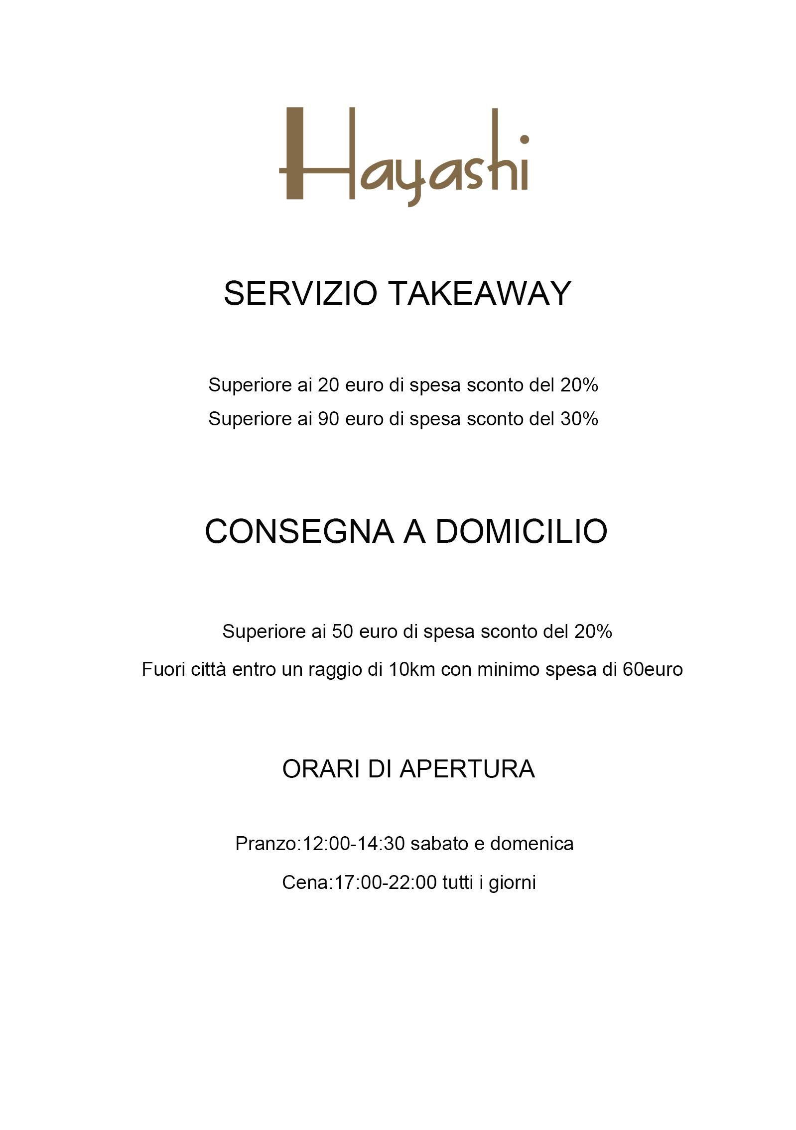 Il Ristorante Hayashi è aperto tutti i giorni della settimana sia a pranzo che a cena.